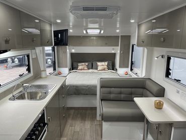 Compact yet cleverly designed, the Camper 19.6ft is built for travellers who value comfort, functionality, and freedom. With a generous payload of 750kg, this caravan gives you the flexibility to pack everything you need for life on the road—without compromise.