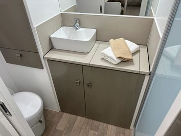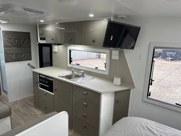Step inside and you'll find a fully-equipped kitchen that makes cooking on the go effortless. Featuring quality appliances, ample storage, and thoughtful design, this kitchen ensures you can prepare meals just the way you like them, wherever you are.