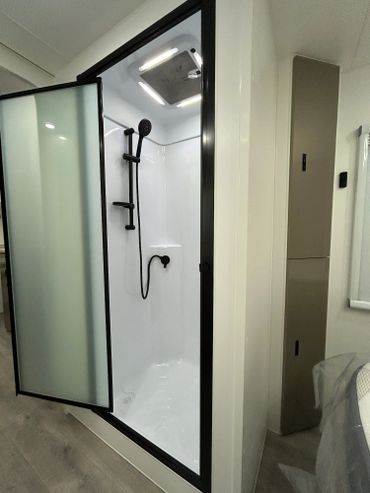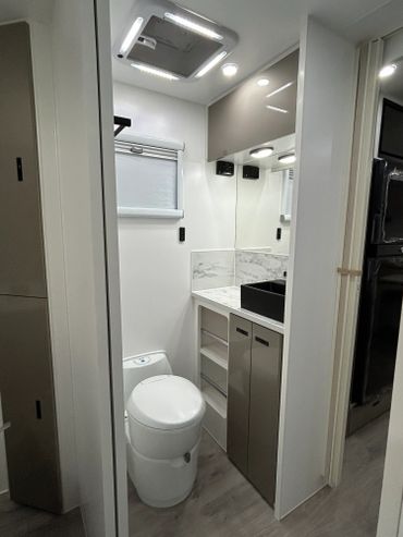 Step inside and you’ll find a clever, spacious design that makes life on the road feel effortless. A comfortable queen-size bed provides the perfect retreat, while a separate toilet and shower ensure privacy and convenience wherever you set up camp.