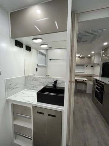 The fully-equipped kitchen is complemented by a full-height pantry and ample storage throughout, giving you everything you need to cook, organise, and live with ease while travelling.